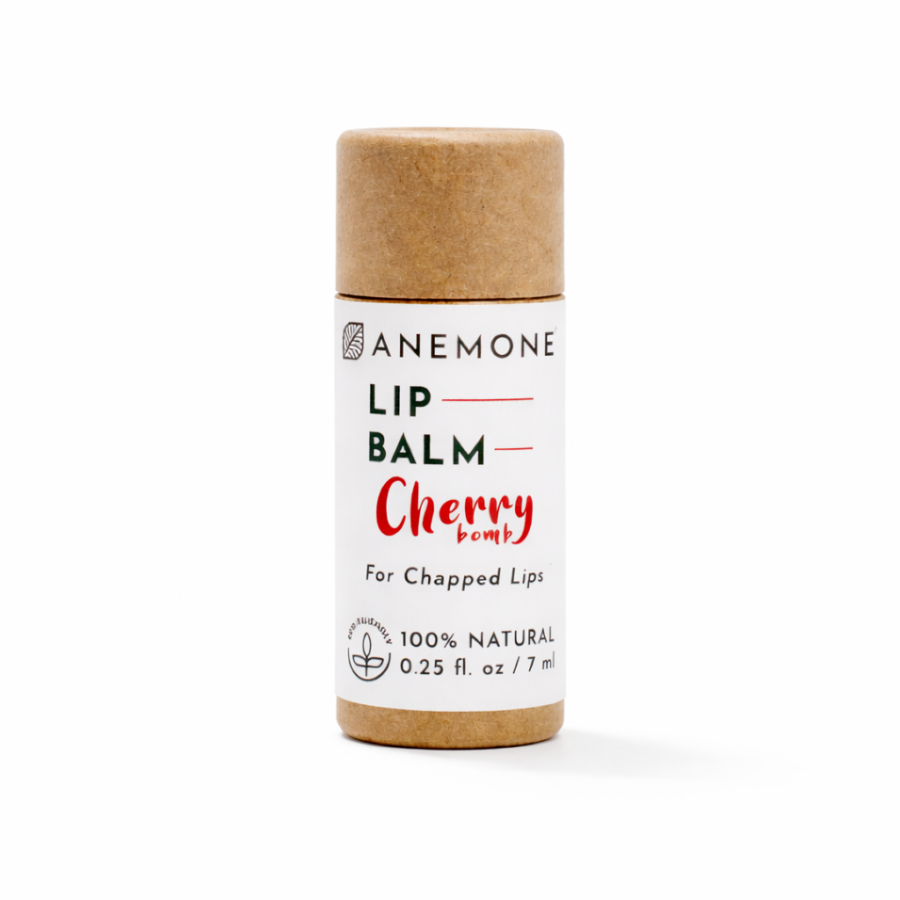 Θρεπτικό lip balm με γλυκιά γεύση κεράσι σε 100% eco-friendly συσκευασία από craft χαρτί.